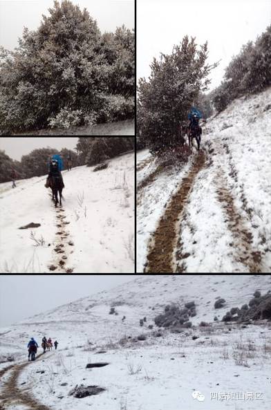 两个多小时后,走出森林,来到开阔的山坡,雪已经转成稀稀落落,路太滑,只能步行。走了一会儿,人开始有了精神,这个时候突然发现,天色也开始变亮。