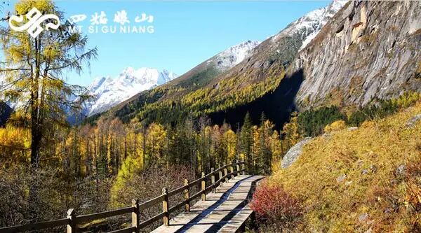 深秋里的四姑娘山,在赤桦红枫的争艳中愈加色彩斑斓。历经沧桑的翠柏青松如金黄麦穗般,在风中摇曳,一路栈道在茫茫林海里曲折蜿蜒,诉说着前方未知的风景。
