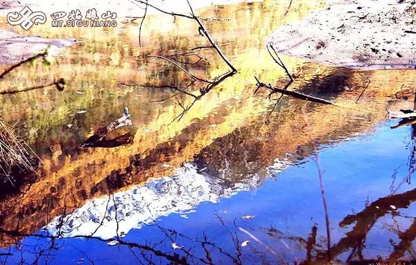 四姑娘山的水在深秋的晕染下更显得清澈透明,倒影和天空合二为一,就像是另一个世界里的美景重合在这里。