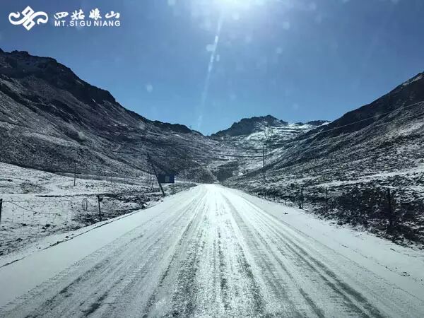 巴朗山已进入冰雪期,路面整版结冰,请小伙伴们挂上防滑链条。冬季出行,小心谨慎驾驶哦!