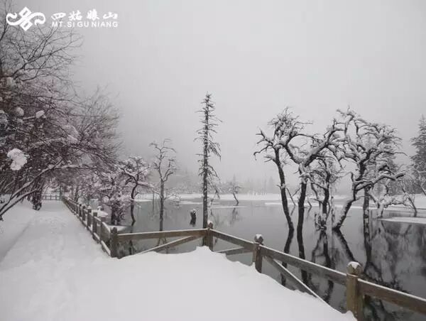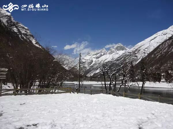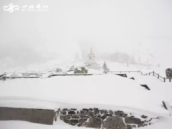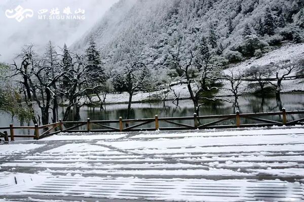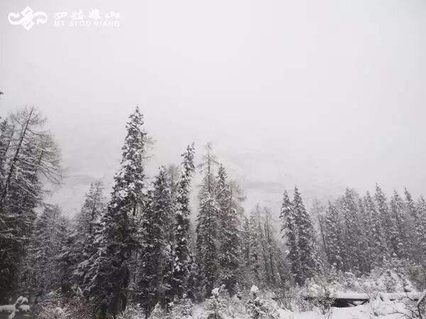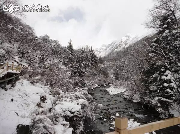 巴郎山的雪在冬天就没停过,透亮的白雪,将去往四姑娘山的路途,打造成了一个白色的世界。