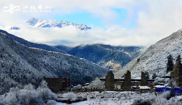 飘扬的经幡在白雪中更显庄重,飞舞中沾染着藏民们彩色的梦想。在蓝天白云之下,白塔庄严肃立,像骑士一般,默默守护着四姑娘。