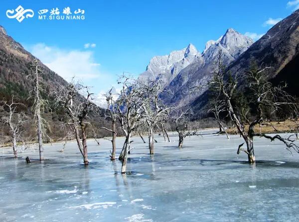 白雪纷飞妆点了凋零的枯枝,换上一身银装,四姑娘山的生机活力瞬间爆发,就连那水中孤立的枯树,也有一种孤芳自赏的傲气。