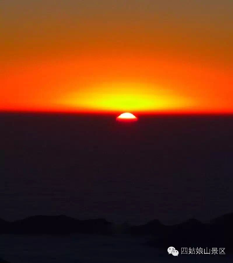 日出时的绝美,整个天空一片绯红,界线分明,云海之上,是朝阳,是希望,是梦想。