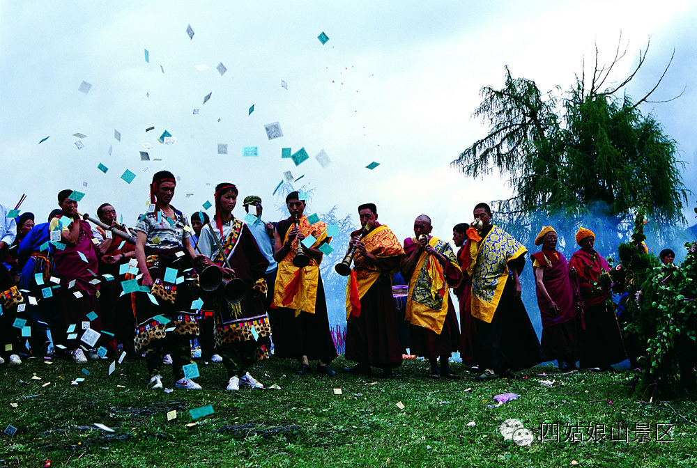 来自四面八方的村寨的藏族小伙、姑娘们身着节日盛装,在悠扬的歌声钟踏出整齐的舞步。